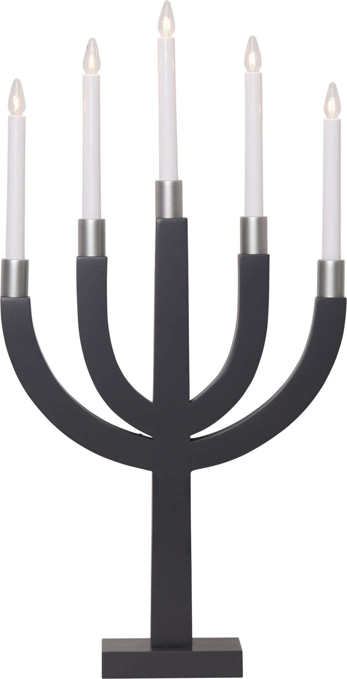 Träljusstake med mässingsbas på ljusen. Placera ljusstaken exempelvis i fönstret för att skapa en härlig adventstämning i hemmet. Anslutningskabeln är vit. BxH 35x67 cm.