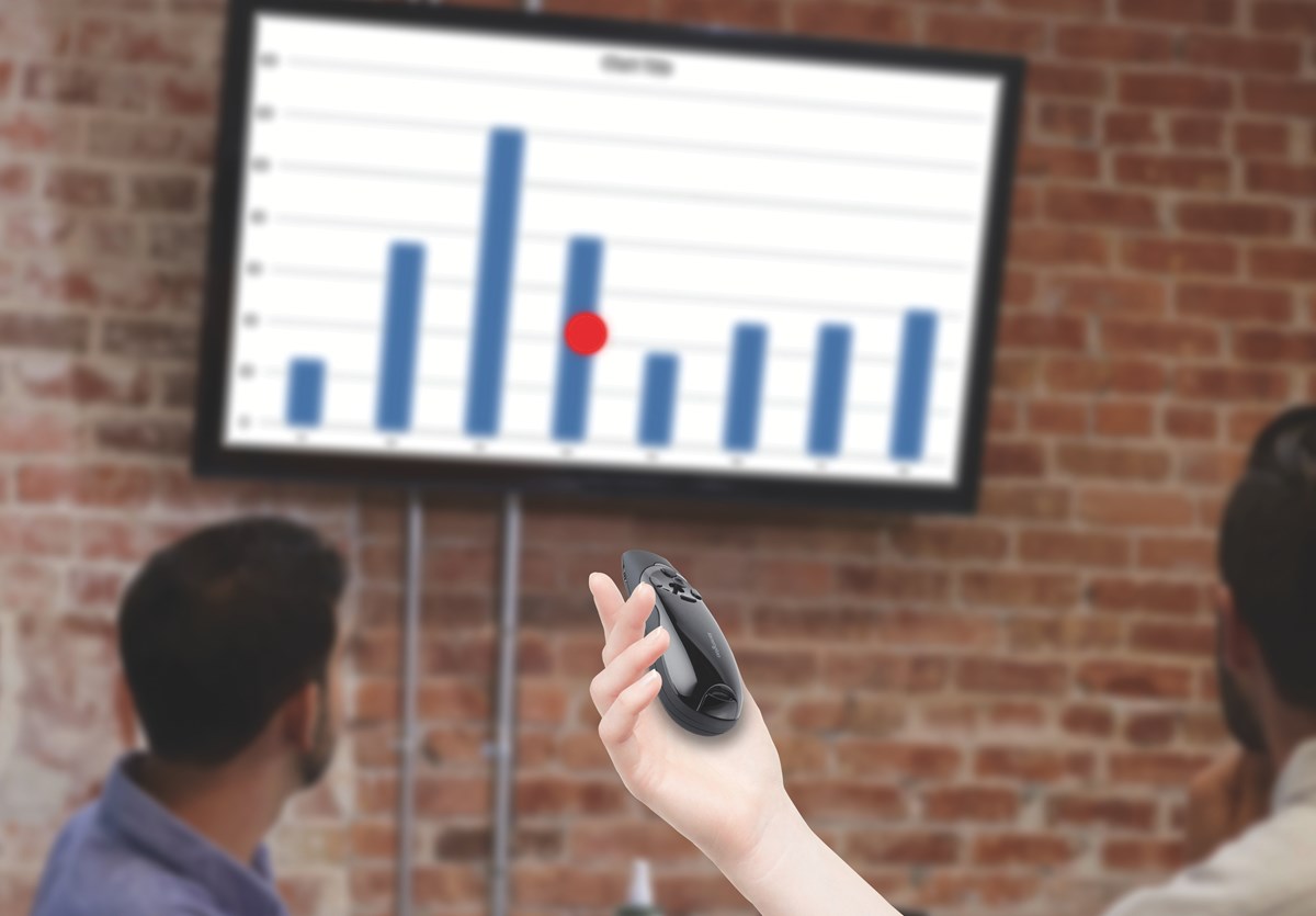 Trådlös presentatör med röd laserpekare och markörstyrning. Med ett enkelt tryck på en knapp växlar man mellan presentations- och markörstyrningsläget. Trådlös Plug-and-play USB-anslutning på 2,4 GHz. AES-kryptering. Upp till 45 meters räckvidd. Kompatibel med pc och Mac.