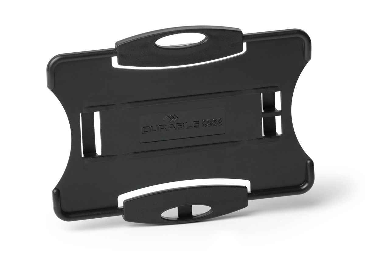 För ID- eller passerkort. Kan användas i både liggande och stående format. Går att kombinera med textilhalsband, utdragbar jojo, nyckelring eller kedja. 10 st/förp.