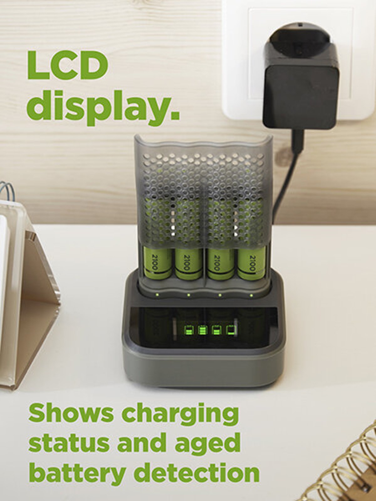 Ladda upp till 8 batterier samtidigt LCD-display Drivs via USB-kontakt
