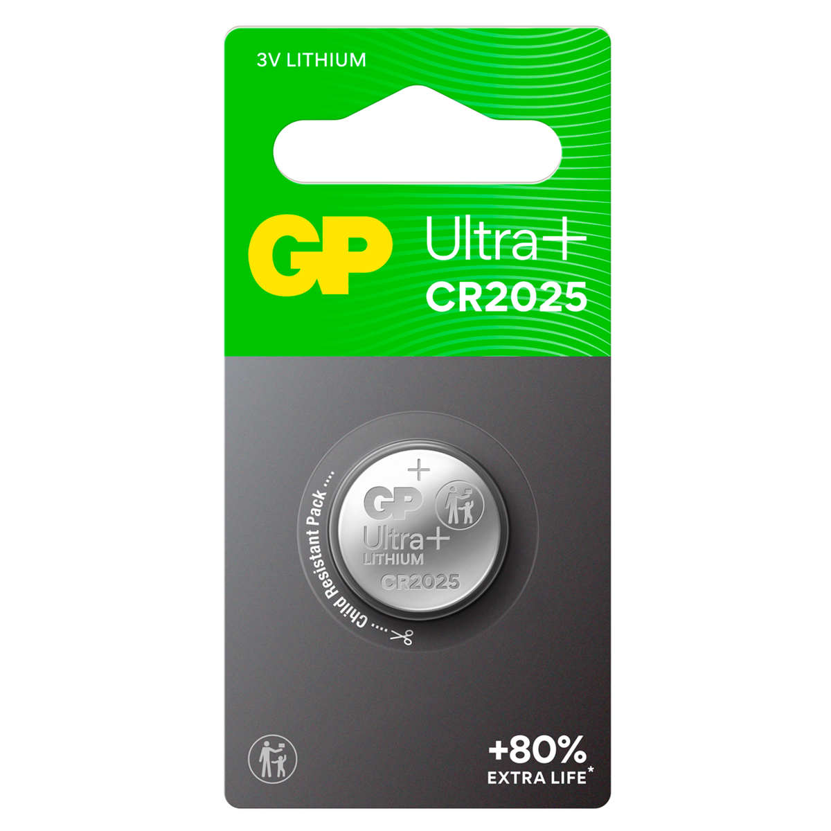 GP Ultra Plus Litium-knappcellsbatterier CR2025 levererar pålitlig kraft och har upp till 80 % längre livslängd.* Speciellt anpassade för bilnycklar säkerställer dessa batterier pålitlig funktion och lång räckvidd vid upplåsning. Avancerad försegling minimerar självurladdning och förhindrar läckage. Byggda för hållbarhet, fungerar i temperaturer från -20 °C till +60 °C. Den barnsäkra förpackningen ger extra trygghet, speciellt i hemmet.