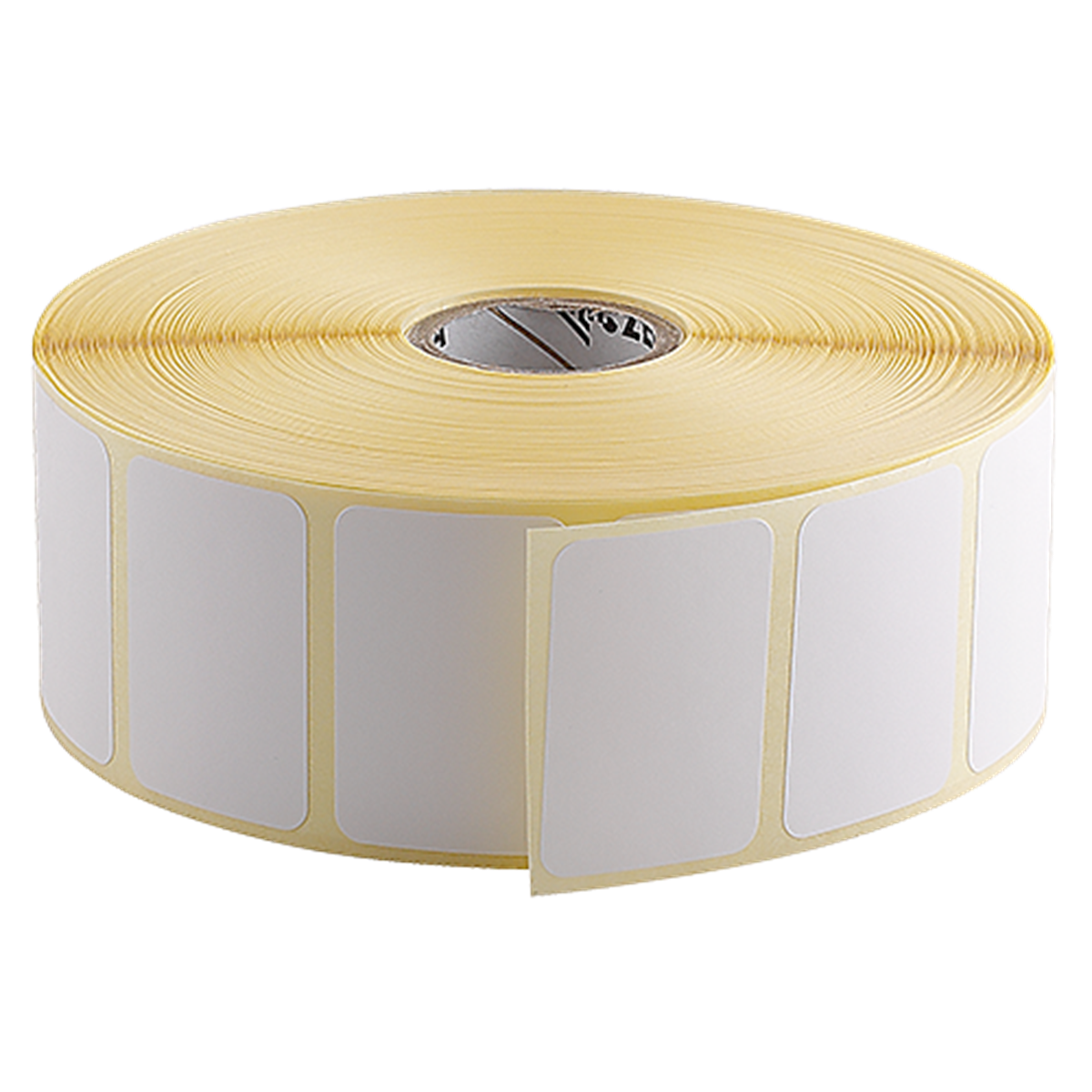 Obestrukna, permanenthäftande pappersetiketter till Zebraskrivare. Termiskt papper.