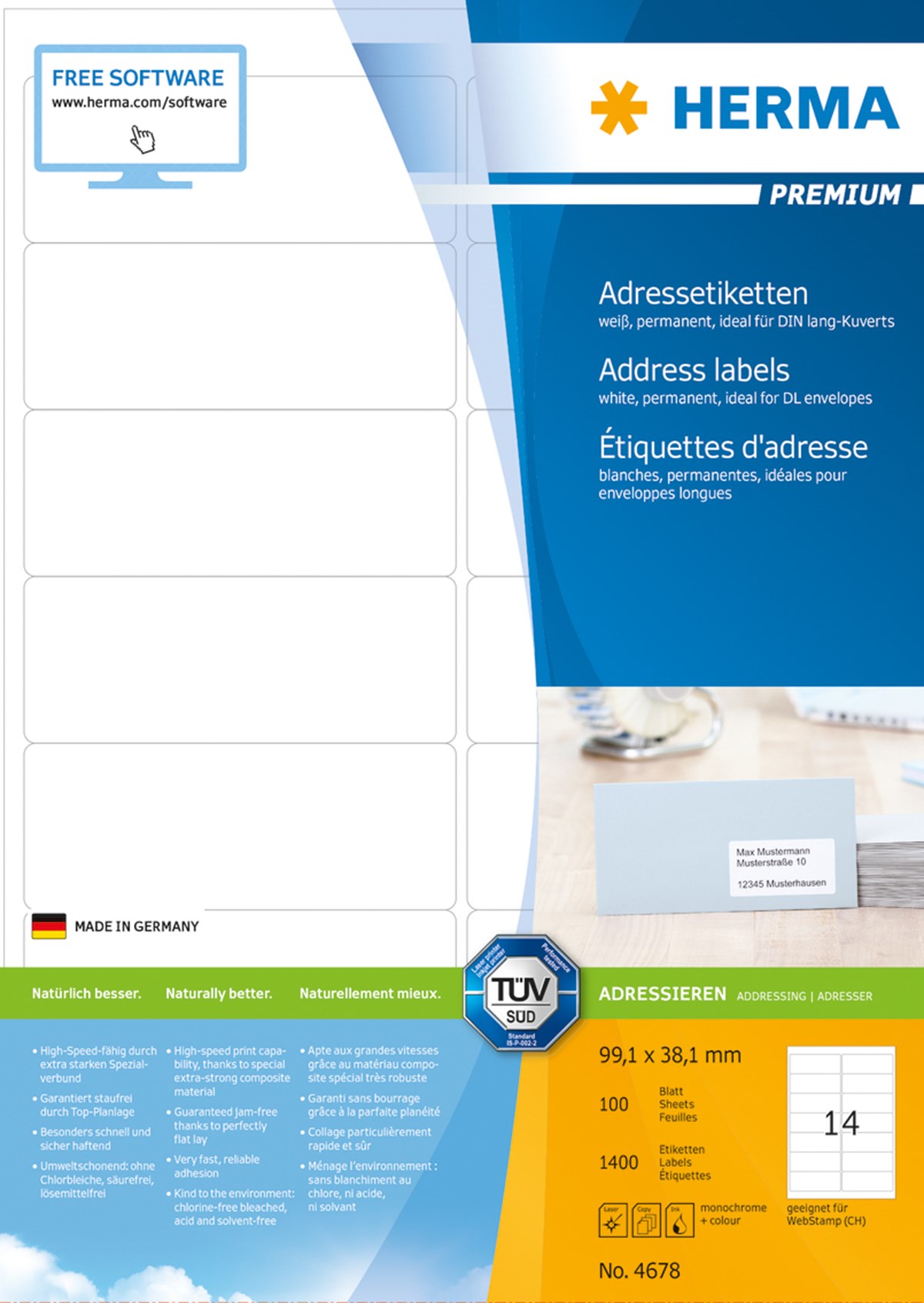 Etiketter Herma Premium 99,1x38,1 mm 1400/fp
