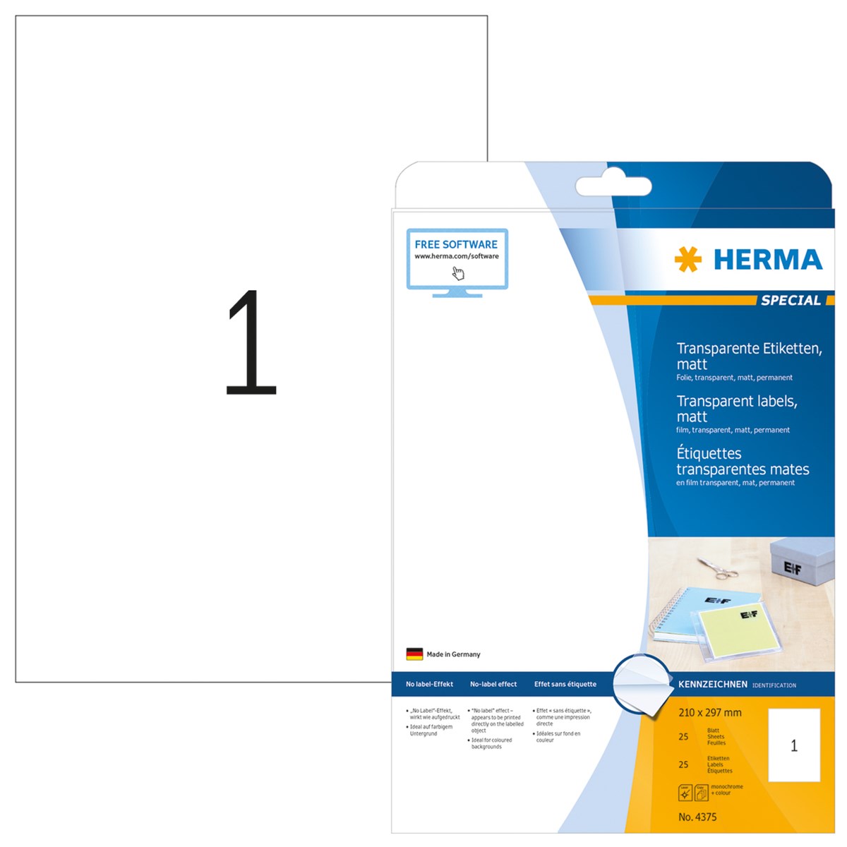 Transparenta etiketter för exklusiv märkning som gör att texten verkar tryckt direkt på underlaget. Perfekt för glasföremål och färgat underlag. Matta. Vattentålig, olje- och smutsavvisande. För laser och kopiering. 25 A4-ark/förp.