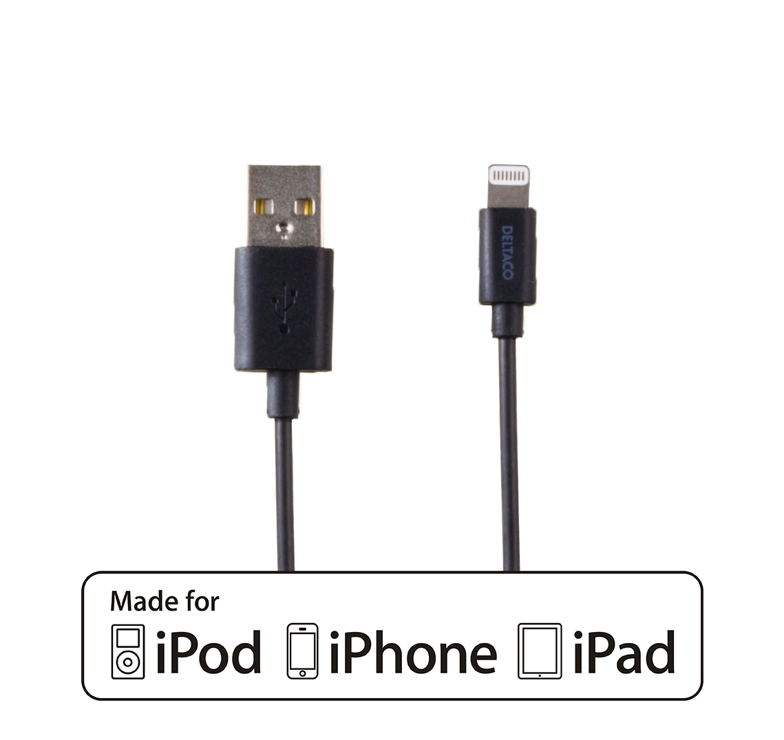 USB-A-kabel med lightningkontakt för att kunna ladda och synka din iPod, iPhone eller iPad.