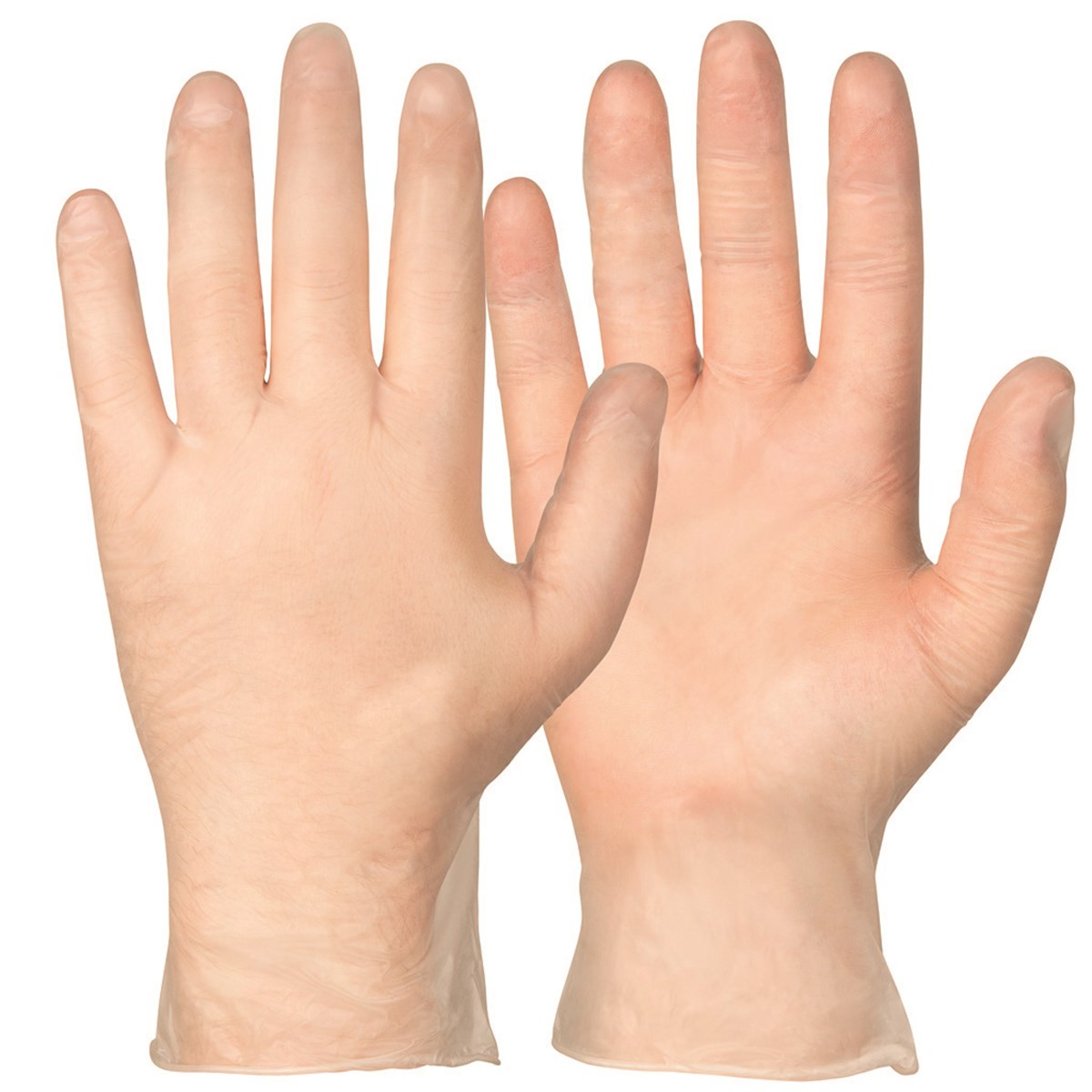 Engångshandskar i vinyl, puderfria. Lätta att ta på och av. Ger god fingerkänsla. Silikonfria. Godkända för hantering av livsmedel, dock ej feta livsmedel (EN 1186). Vikt 4,5 ± 0,3 g.