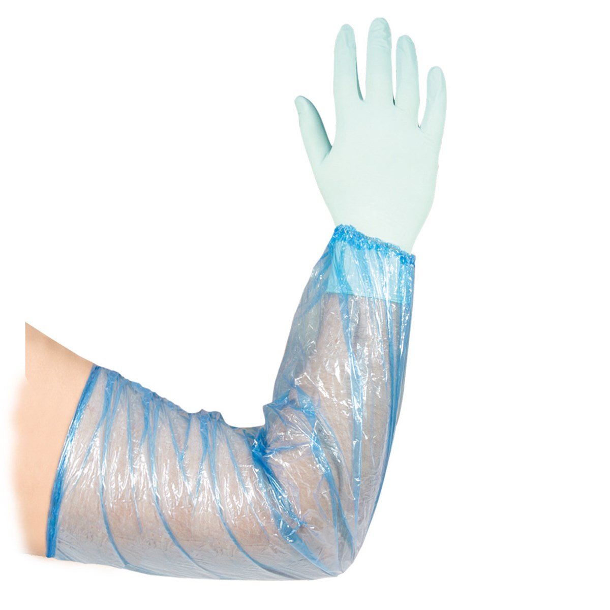 Skyddsärmar i polyeten med elastisk tillslutning i öppning och vid handled. Godkända för användning i direkt kontakt med alla typer av livsmedel. Längd: 46 cm. Tjocklek 20 my. 100 st/förp.