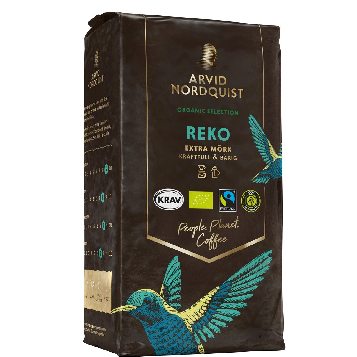 Mörkrostat, ekologiskt bryggmalet kaffe som bjuder på en ren doft av nöt och mandel. Smaken är rund med fruktigt behaglig syrlighet och balanserad beska med en påtaglig sötma. Kryddig eftersmak med ton av lakrits. 450 g. 12 st/kartong.
