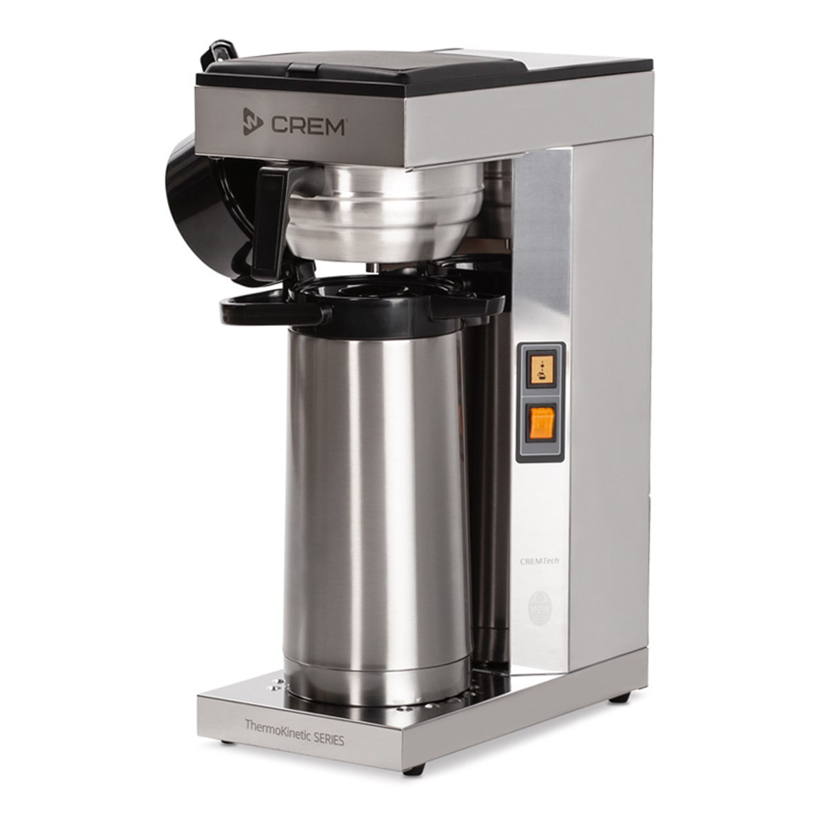 Brygger kaffe direkt i en 2,2-liters pumptermos vilket gör själva kaffeserveringen enkel och flexibel eftersom du kan servera kaffe överallt. Manuell vattenpåfyllning. Brygger 15 koppar, bryggtid ca 7 minuter. 15 liters kapacitet per timme. Effekt: 1-fas: 2200 W. Filter: 110 mm.
