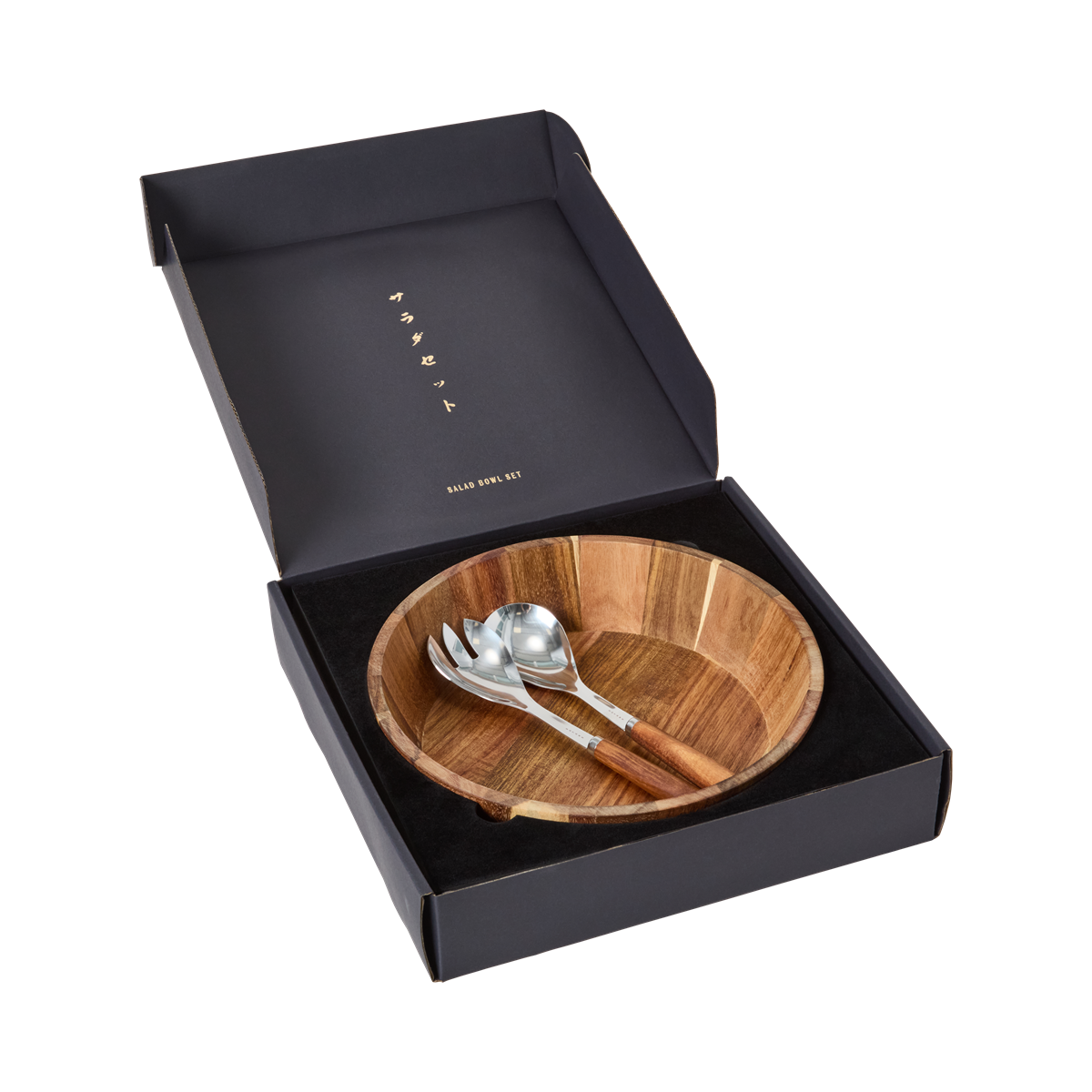 En rymlig salladsskål i vackert oljat akaciaträ som kombinerar naturlig och stram design med funktionalitet. Den breda, låga formen lyfter fram råvarorna och de matchande salladsbesticken gör serveringen komplett. Skål: Ø 29 x 6,5 cm. Bestick: 24 cm.
