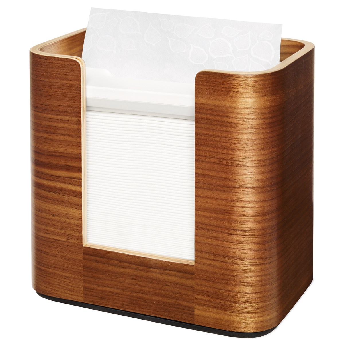 Elegant designad servetthållare i valnötsträ. Kompakt format som minimerar utrymmesbehovet på disken. Matar ut en servett i taget, vilket förbättrar hygienen och minskar förbrukningen med minst 25% jämfört med traditionella servettdispensrar. Mått: 19,3x20,3x13,6 cm. Rymmer 150 st N4-servetter.