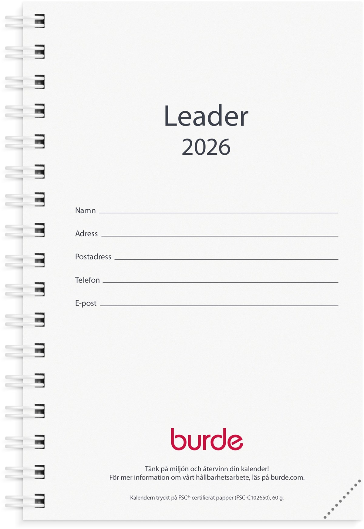 Format: 83x127 mm. Layout: Liggande. Vecka/uppslag. Kalendarium: 2025-12-15 - 2027-01-03. Omslag: Kartong. Spiralbunden. Innehåll: Atlas, Kyrkliga helgdagar, Flaggdagar, Helgdagar/aftnar, Månfaser, Namnsdagar, Internationella helgdagar översikt, Temadagar/händelser, Årsöversikt/årsöversikter, Årsplan/årsplaner. Antal sidor: 152. Miljöinformation: FSC®.