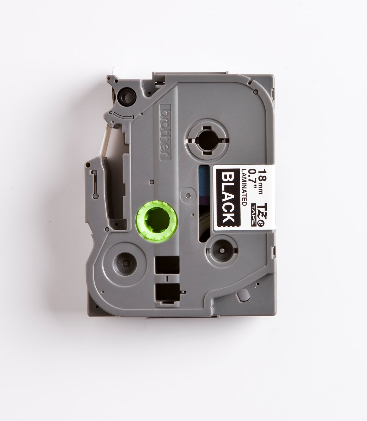 TZe tapekassetter är enkla att installera, finns i olika bredder, färger och material och säkerställer att din P-touch-märkmaskin uppfyller dina märkningsbehov. Mått: 18 mm x 8 m.