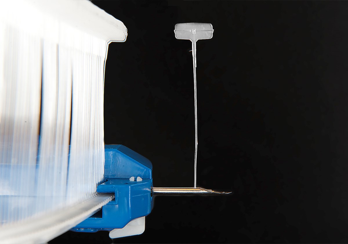 Fästen till fästpistoler för textiletiketter.