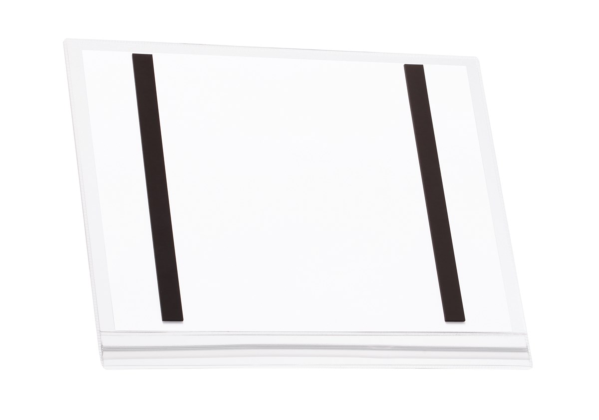 Vattentåliga plastfickor för användning utomhus – enkla att byta inlagan i Väderbeständiga och vattentäta plastfickor avsedda för information som ska visas utomhus där det finns risk för skvättande vatten t.ex. vid handelsträdgårdar, poolområden, grindar och anslagstavlor. Tål sol, hög fuktighet, dagg, regn och skvättande vatten. Plastfickorna är gjorda av transparent, UV-stabil och väderbeständig plast med antireflekterande effekt. Vattentät tryckförsegling skyddar mot väta. Testade enligt IPX5 standard. Tillverkade av återvunnen Blue Angel-certifierad plast. Kan användas i stående eller liggande format. 2 ark, som fickan rymmer, ingår. Magnetisk, två starka magnetremsor på fickans baksida. 5 st/förp.