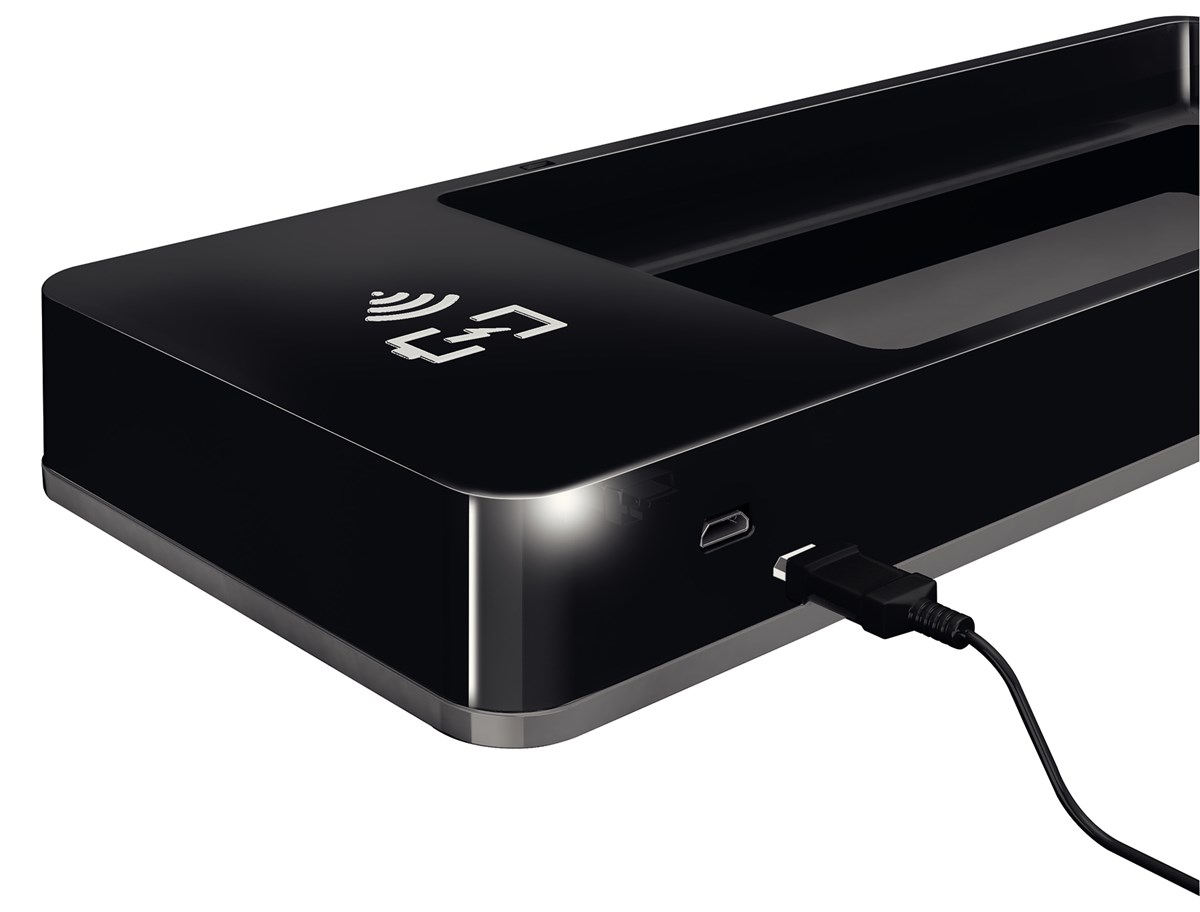 Pennfack med praktisk induktionsladdare. Med den trådlösa Qi-laddaren kan du ladda din mobiltelefon utan kabel (kräver att telefonen stödjer detta). När telefonen är fulladdad slutar enheten att ladda. USB-kabel för strömtillförsel medföljer. Mått: 266x28x101 mm.