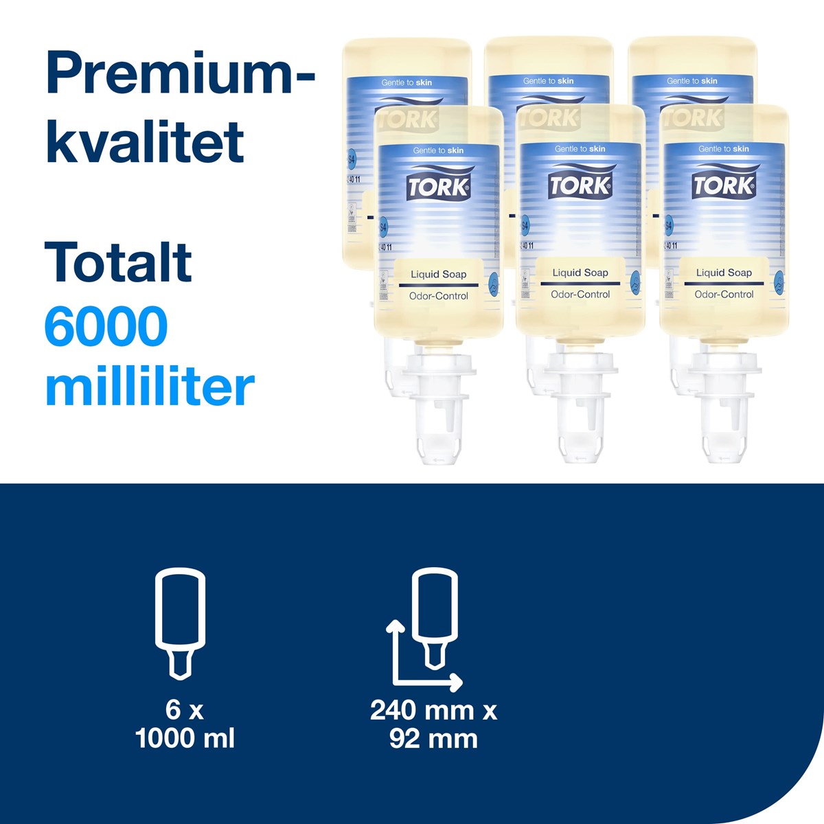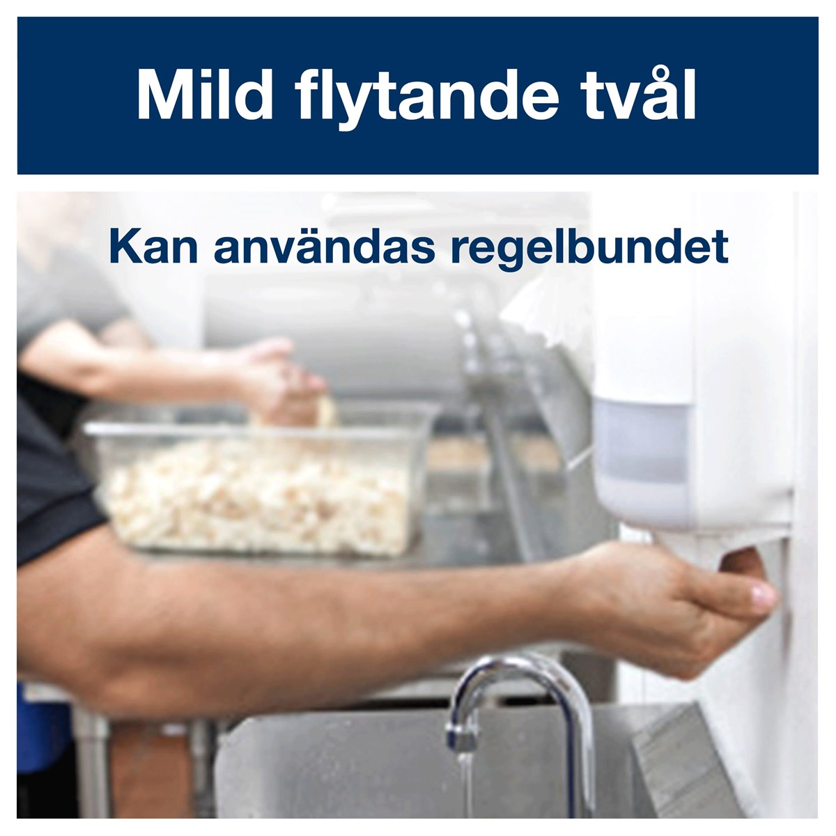 En kökstvål som tar bort fett och lukt från händerna. En tvål som gör det den ska, utan färgämnen eller parfym. Beprövat snäll mot huden baserat på dermatologiska tester och kan användas regelbundet. Passar med Tork dispensrar för tvål och handdesinfektion som är Easy to use-certifierade vilket ger god handhygien för alla användare. Flaskan krymper ihop efter hand, vilket minskar avfallsvolymen med upp till 70 %.