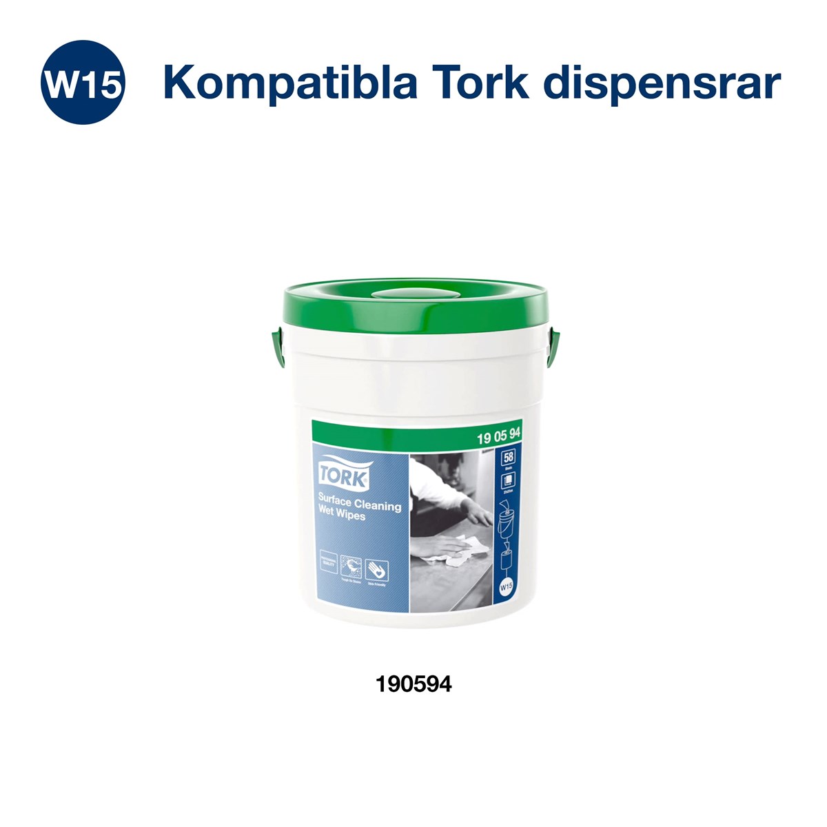 För påfyllning av artikelnummer 190594. Våtduk för snabb och effektiv ytrengöring i miljöer där vatten inte finns att tillgå. Perfekt för svåra fläckar från målarfärg, klackar, fett, tusch m.m. Parfymfri och skonsam mot huden. 4 förpackningar x 58 våtdukar. Mått: 27 x 27 cm.
