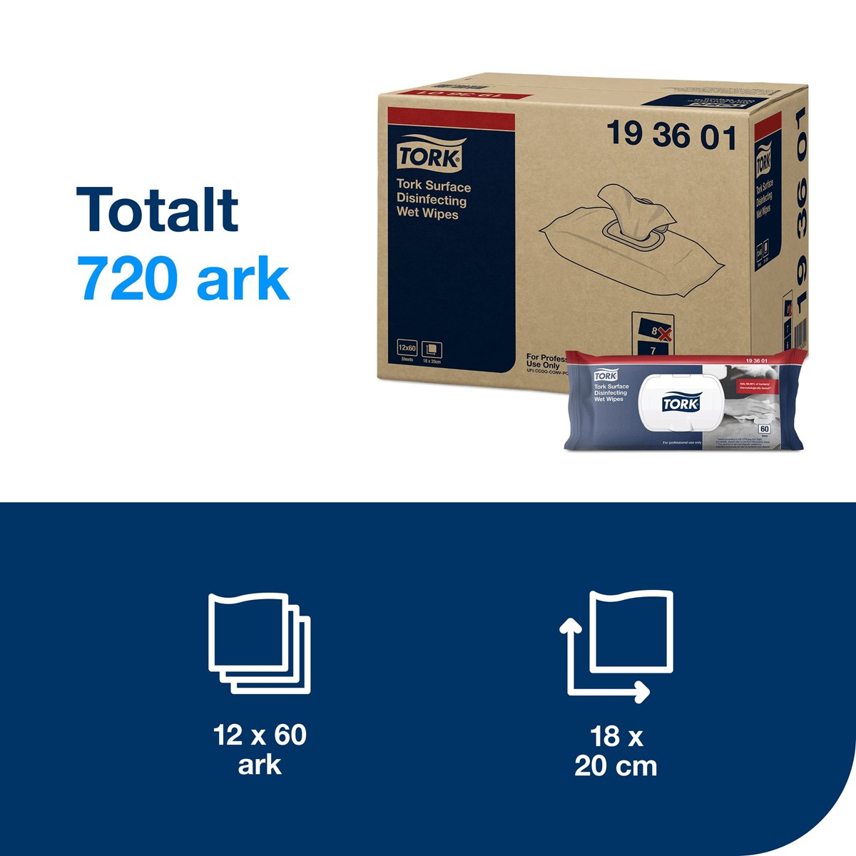 Ytdesinfektion Tork Våtdukar 60/fp