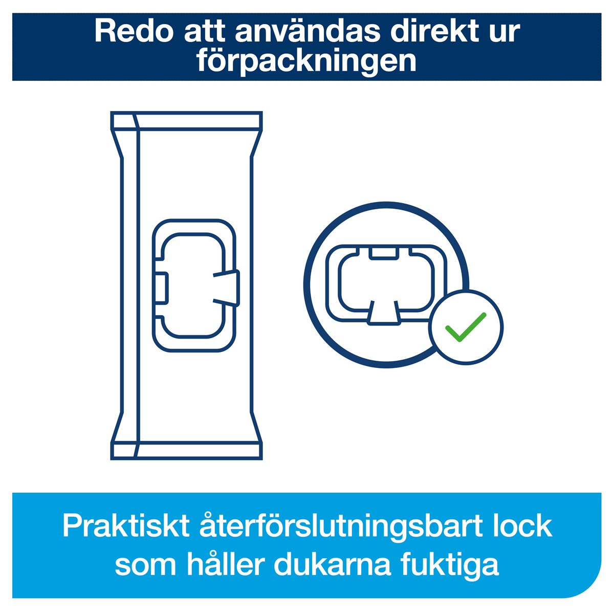 Återförslutbart lock bidrar till att bibehålla trasornas fuktighet