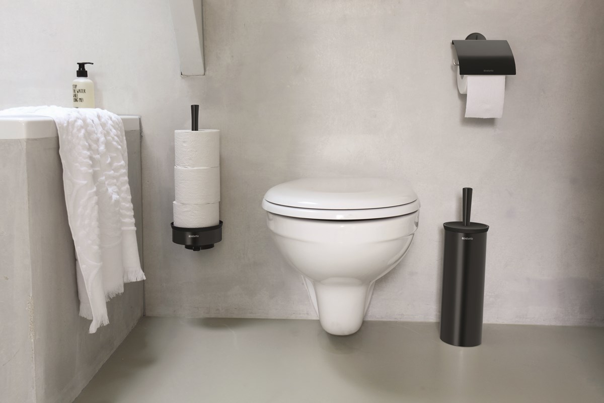 Toalettborste som kan förvaras stående på golvet eller monteras på väggen med medföljande väggfäste. Löstagbar innerhink – enkel att rengöra. Utbytbar borste. 10 års garanti.