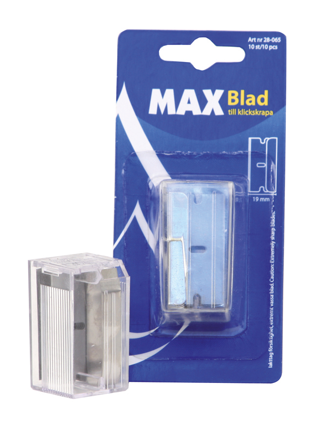 Ergonomiskt formad klickskrapa i plast. Används för att ta bort hård smuts från fönster, golv m.m. 1 blad medföljer. 12 st/förp.