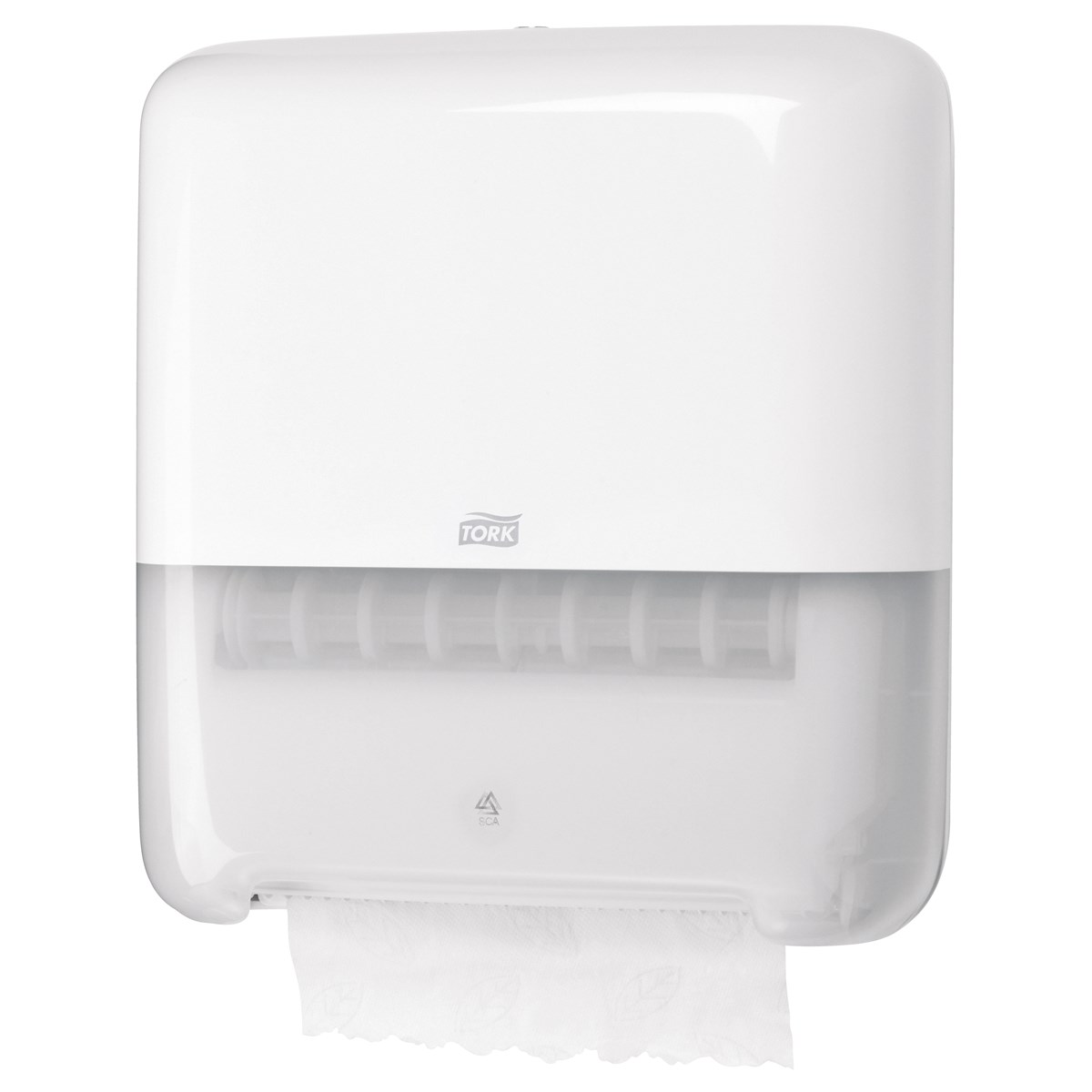 Tork Matic® Dispenser Handduk på rulle i Elevation design erbjuder enkelt underhåll av högtrafikerade toalettutrymmen och minskar förbrukningen genom utmatning av ett ark i taget. Tork Elevation dispensrar har en funktionell, modern design som skapar ett bestående intryck hos dina besökare. Enkelt underhåll med refillindikatorn som visar när det snart är dags för en ny påfyllning. Mått: (H x B x D) 37,2 x 33,7 x 20,3 cm.
